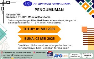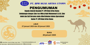 Sehubungan Dengan Hari Libur Isra Mikraj, Hari Libur Imlek dan Cuti Bersama maka diberitahukan bahwa Operasional Kantor PT. BPR Wuni Artha Utama