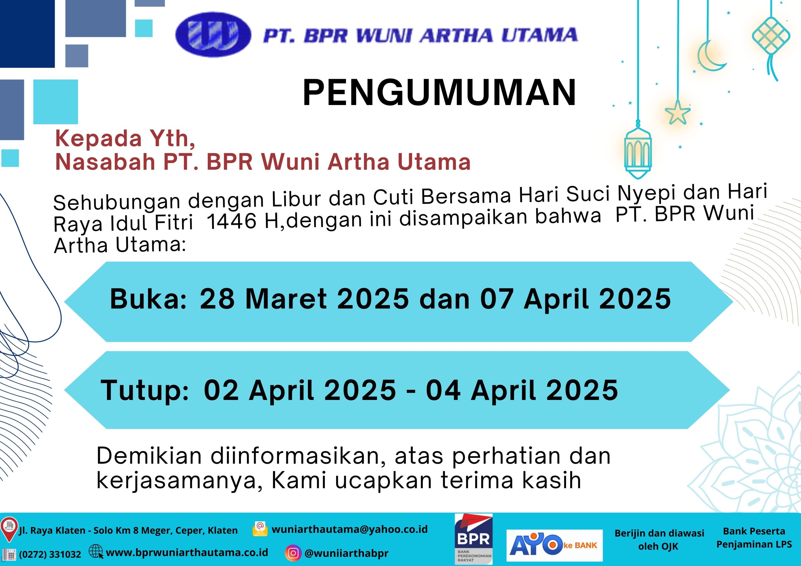 Pengumuman Kepada Seluruh Nasabah PT. BPR Wuni Artha Utama
